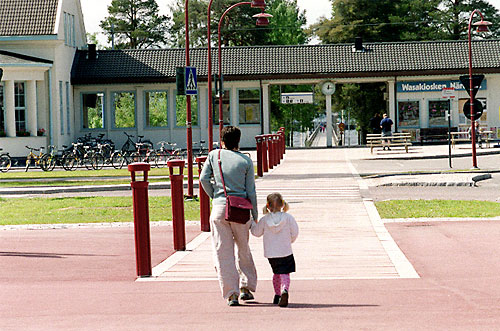 Gångstråket över riksvägen fortsätter genom stationshuset och nästan ut på Långbryggan. Ännu spärras vägen av järnvägsspåren, ett problem som löstes först i etapp 3.